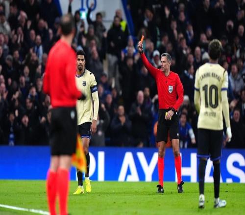 欧冠联赛阶段第5轮,巴塞罗那客场对阵切尔西,上半场阿劳霍染红离场,据统计,阿劳霍是欧冠改制以来领到红牌次数并
