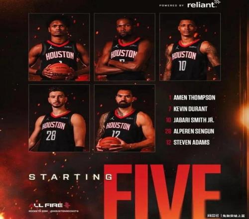 届时,雷霆全队将在主场领取2024-25赛季的NBA总冠军戒指,而火箭新援凯文杜兰特则是回到故地面对老东家雷霆。但本场比赛最吸引人的地方却并不在于此,而是在于火箭首发五虎的恐怖身高。今日,火箭主帅乌度卡在接受媒体采访时透露,火箭揭幕战的首发阵容为阿门汤普森+凯文杜兰特+小贾巴里史密斯+阿尔佩伦申京+史蒂文亚当斯。。