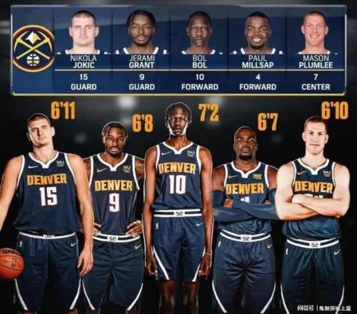 原本以为2019-20赛季丹佛掘金在泡泡园区曾派出的首发五虎:尼古拉约基奇(2.11米)+杰拉米格兰特(2.01米)+波尔波尔(2.21米)+梅森普拉姆利(2.13米)+保罗尔萨普(2.01米)的平均身高已经天下无敌了!可谁曾想到,五年后的NBA竟然会有比丹佛掘金首发五虎平均身高还要更为炸裂的首发阵容诞生。