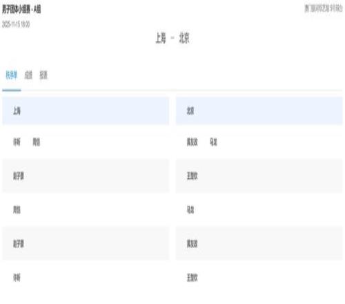 11月15日,全运会男子团体小组赛上海队与北京队的对阵表已更新。由于上海队并未派出樊振东,今日18时开始的对决,将不会出现樊振东对王楚钦的比赛。