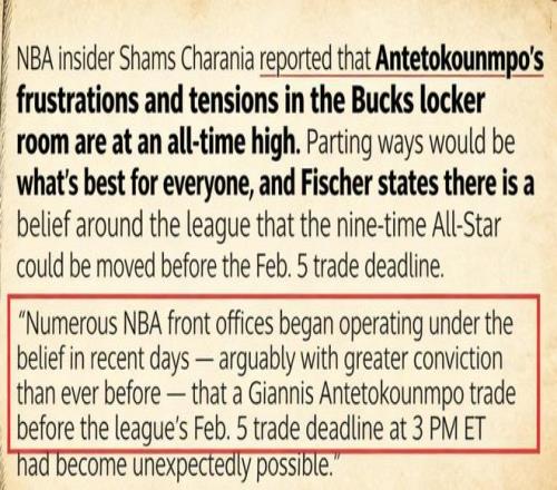 值得一提的是,上赛季交易截止日,发生了震惊全联盟的东契奇交易,但本赛季迄今为止,交易市场极其平静,如果此时字母哥的交易达成,无疑好像给平静的湖面投入一颗深水炸弹!